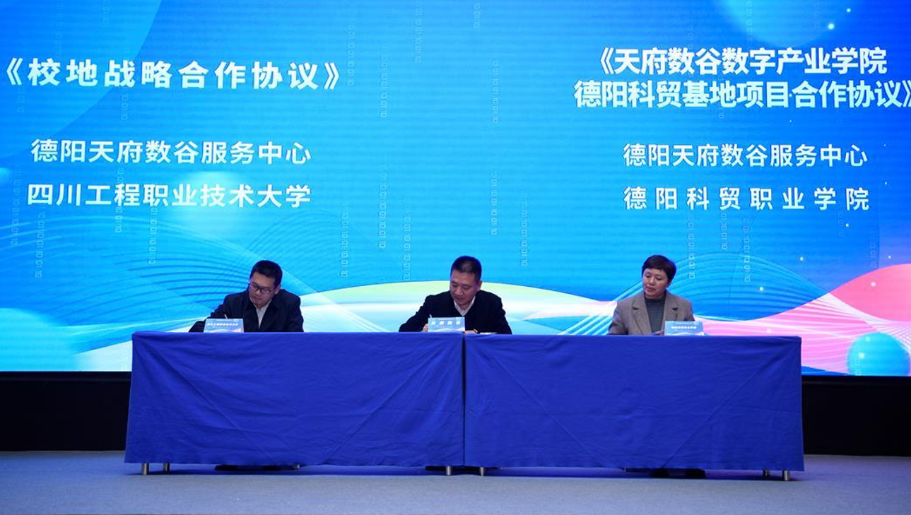 天府数谷服务中心分别与四川工程职业技术大学、德阳科贸职业学院签订合作协议。