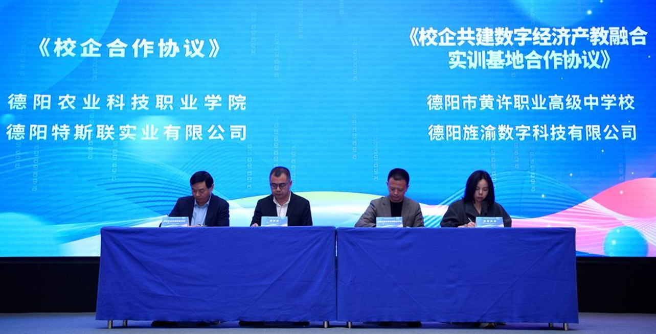 德阳农业科技职业学院、德阳市黄许职业高级中学校分别与德阳特斯联实业有限公司、德阳旌渝数字科技有限公司签订合作协议。