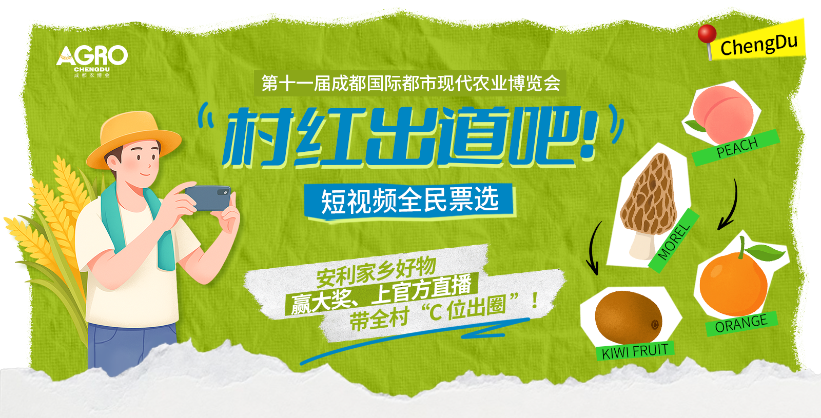 此外, “村红出道吧!”短视频全民票选活动向扎根乡村一线的三农达人、农业职业经理人、驻村书记/村支书、非遗工匠等广发“英雄帖”,只需拍摄短视频,带话题#“村红”喊你逛成都农博会#,发到抖音/视频号/小红书并@第11届成都农博会,即可参与“出道票选”。视频点赞数前10名可获得“成都农博会品质甄选官”证书、流量券、“农博惊喜礼包”等奖品。
