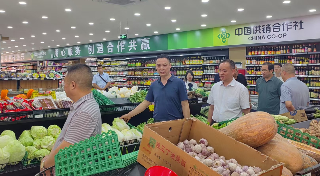调研组一行先后前往营山县城区农贸市场、乡镇超市了解建设及经营情况。县农投公司总经理张晓荣详细介绍了新建农贸市场的规划方案,其硬件设施、环境卫生、经营管理等方面均按照三星级农贸市场标准建设。樊治强了解了营山农贸市场现有情况以及新建农贸市场周边人流量、建设周期,并查看了建设整体效果图,对建设效果表示满意。在丰产惠客多连锁超市,县社业务股长陈兴旺围绕营山县社与广安惠客多公司合作的超市项目,介绍股权合作的具体模式、权责分工、项目整体资金投入规模与规划,调研组对超市的规模和布局、人员管理、进货渠道及货品销售情况进行了逐一了解,并对超市运营提出了建议。
