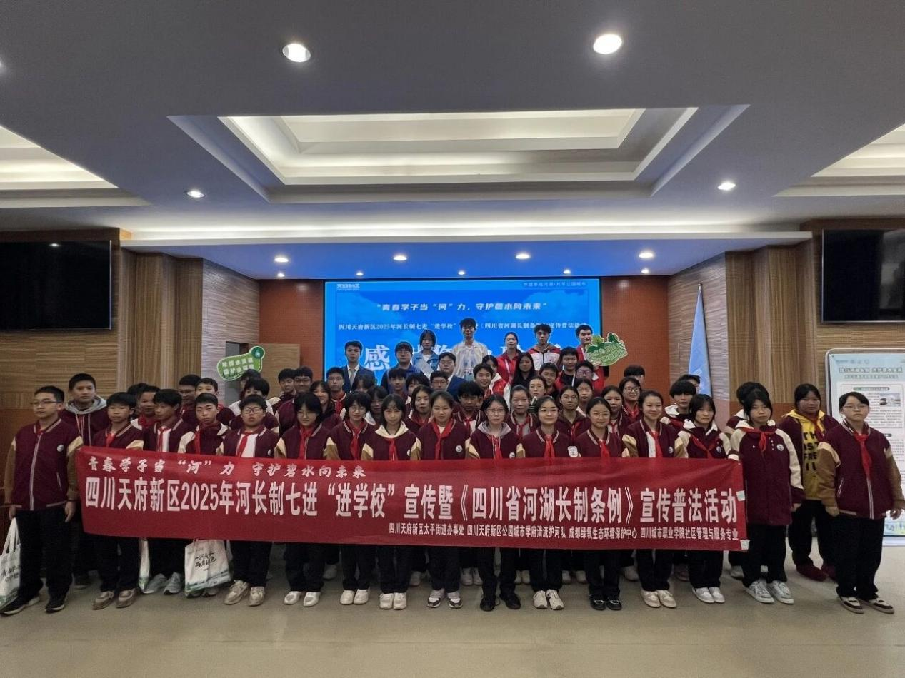 近日,四川天府新区太平街道在太平中学成功举办“青春学子当‘河’力,守护碧水向未来”河长制“进学校”宣传活动。此次活动深入贯彻《四川省河湖长制条例》及省级“七进”宣传工作部署,推动河湖保护教育融入校园,通过政策宣讲、互动实践、倡议宣誓等形式,激发青少年参与河湖保护的热情,构建“以校育生、以生带家、全民共治”的生态保护新格局。