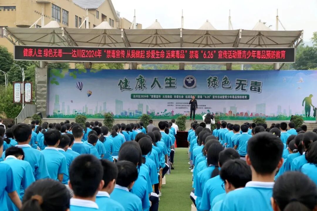 作为达州市毒品预防教育省级示范校,达州中学构建“阵地建设+联动协作+全域覆盖”格局,高标准建成禁毒教育微基地,通过毒品样品展示、VR 体验等,让学生认清毒品危害。2024 年“6・26”国际禁毒日,达川区禁毒委在我校举办活动,区委副书记、区长唐令彬等出席,3000 余名师生及家长参与宣誓、模拟法庭等环节。