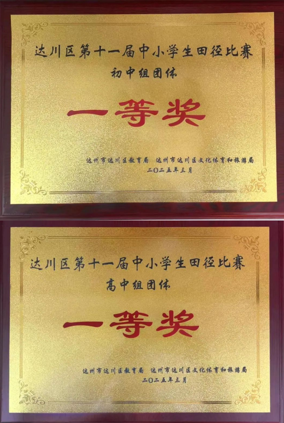 3月25日-28日,在2025年达川区第十一届中小学生田径比赛中,达州中学田径队在赛场上顽强拼搏,取得了27金10银,打破11项赛事纪录,荣获初中组、高中组团体第一名的好成绩。