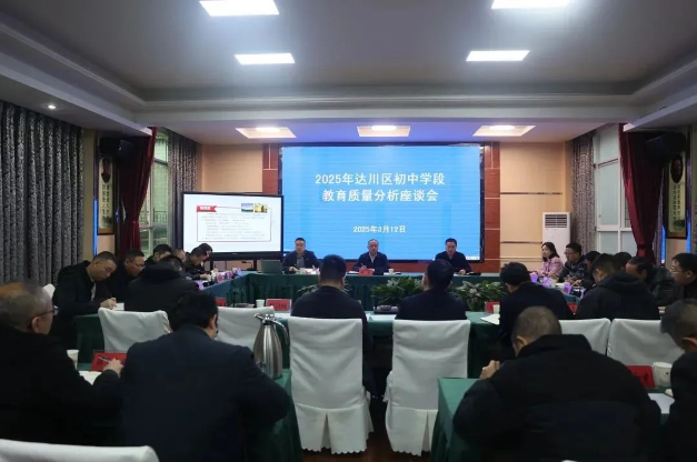 3月12日,2025年达川区初中学段教育质量分析座谈会在达州中学召开。达川区教育局部分局班子成员、各督导责任区主任、区教研室主任及含初中学段的公、民办学校党组织书记或校长参加会议。