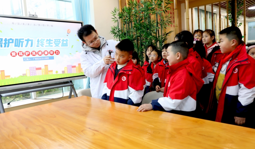 2025年3月3日是第二十六个全国爱耳日,今年全国爱耳日宣传主题为“健康聆听 无碍沟通”。当日,四川省广安市广安区政协教科卫体委联合广安区东方小学校开展“爱护耳朵 聆听美好”全国爱耳日主题宣传教育活动,邀请广安福源医院的耳科医生到东方小学校对学生进行耳部健康筛查,普及爱耳日的由来、耳朵结构、预防耳部疾病等知识,引导学生养成健康用耳的好习惯,聆听美好关注听力健康,增强学生爱耳护耳意识。(沈仁平  廖小兵)