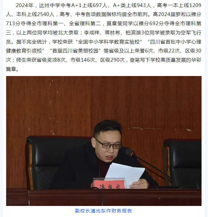 飞起玉龙腾戛云 山舞银蛇画翠屏——达州中学第二届教代会第二十六次会议顺利召开