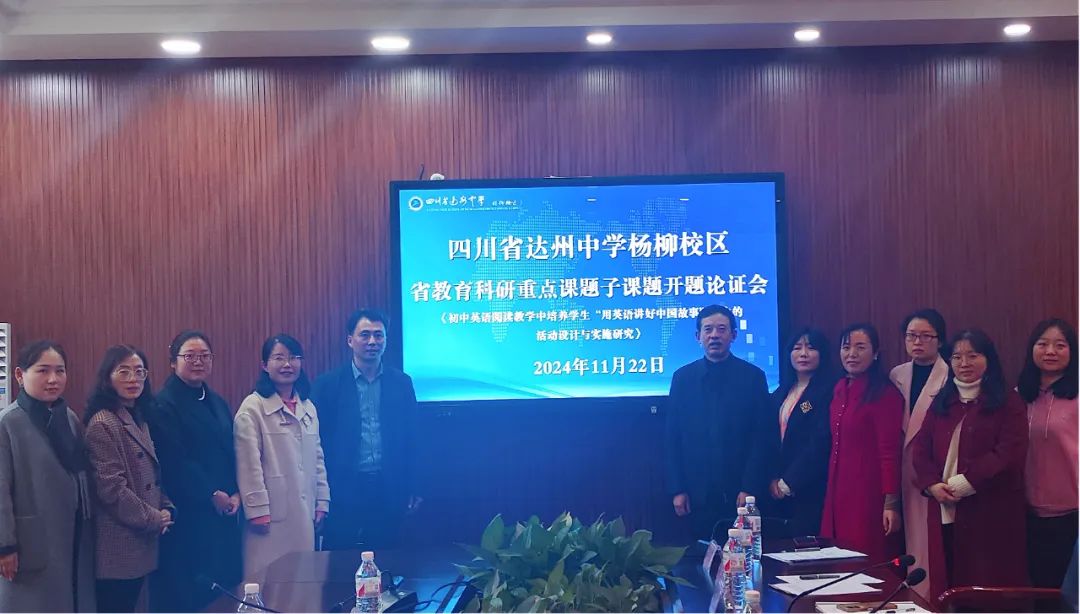 11月22日,主题为“初中英语阅读教学中培养学生用英语讲好中国故事能力的活动设计与实施研究”开题论证会在四川省达州中学杨柳校区召开。市教科所理论研究室负责人刘海霞、市教科所初中研究室负责人陈户娅和区教科所理论研究室主任张洪祥等3位专家莅临本次会议。会议主要目的是对该课题的初步构思进行交流和探讨,为接下来的研究工作打下良好基础。