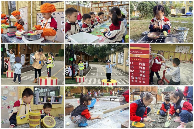 创造力、想象力以及解决问题的能力,让来访的教师们不禁连连称赞。随后,来访的老师们带着满心的期待走进了我们的户外游戏区域。在这里,他们沉浸式体验了在康乐课程引领下,基于幼儿兴趣精心打造的游戏场地。活动中,孩子们成为游戏的小主人,他们自主选材,自由探索,那专注投入的游戏状态,仿佛置身于一个只属于他们的奇妙乐园。