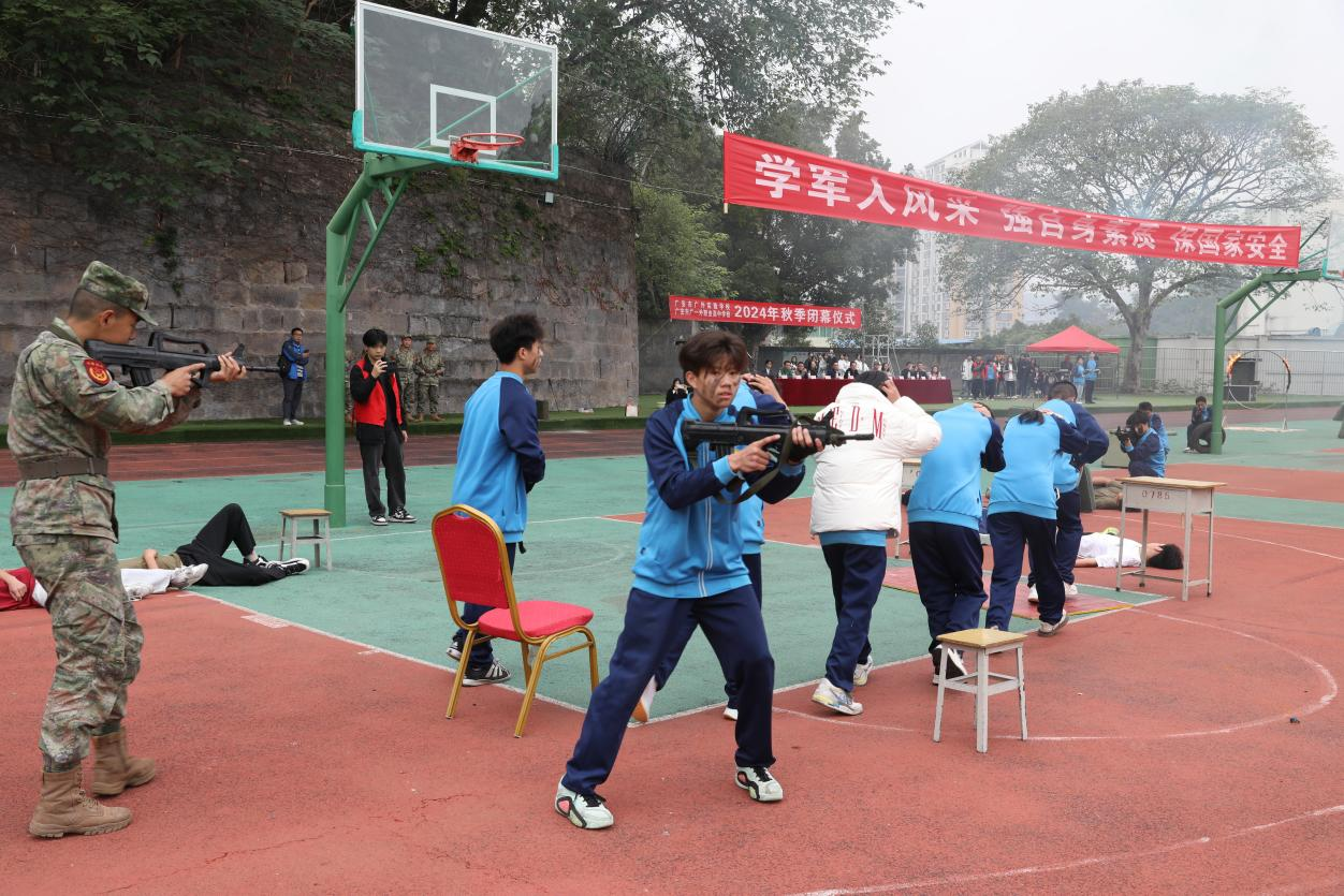 铁血铸军魂,磨砺显英姿!11月7日,位于广安区浓洄街道柑子园社区的广安外国语实验学校举行军训成果会演,检验700余名高一新生一周的军训成果,展示新时代青年的国防风采。