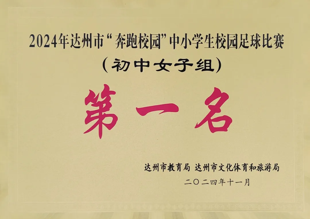 2024年达州市“奔跑校园”中小学生校园足球比赛(中学组)于11月1日落下帷幕,达州中学女子足球队再创佳绩,斩获初中女子组10连冠、高中女子组7连冠!