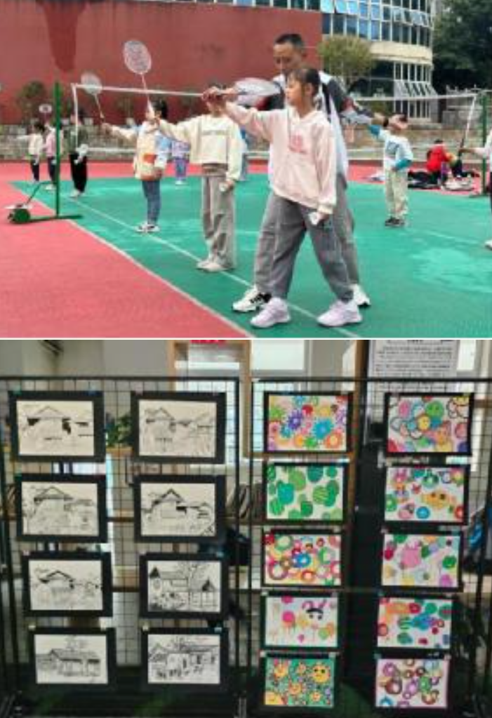 漫步三里校园,彩旗招展,丹桂逸香,银杏如画,热情地欢迎家长朋友们的到来。升旗台大屏幕播放着开学以来孩子们学习、活动的精彩视频;运动场上,篮球、足球、田径、乒乓球等体育社团活力四射、朝气勃发,似奔腾的骏马,追逐着风的脚步;美术作品展上,一幅幅色彩斑斓的秀美画卷,一个个构思巧妙的精美手工、剪纸,一幅幅娟秀的书法作品都是孩子们用心灵勾勒出的美好世界。