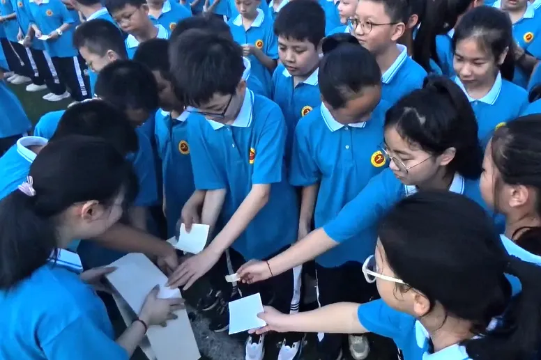 全体新生将自己的梦想和美好期盼寄存在愿景盒中,期待初三毕业时再次开启。