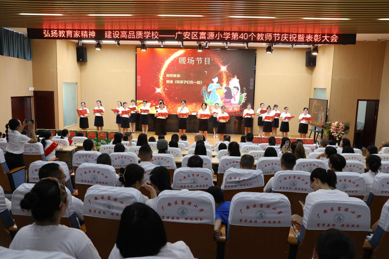 此外,当日该校还广安区富源小学举行“大力弘扬教育家精神,加快建设高品质学校”为主题的2024年度教师节庆祝暨表彰大会,表达为人师者的喜悦心情,抒发从业教育的独有情怀,对20名校级优秀教师、优秀班主任、优秀辅导员进行表彰。广安区老促会、广福办事处和爱心企业家、广安区政协委员张鸿现场为教师送来了慰问金和慰问品,助力办好人民满意教育。