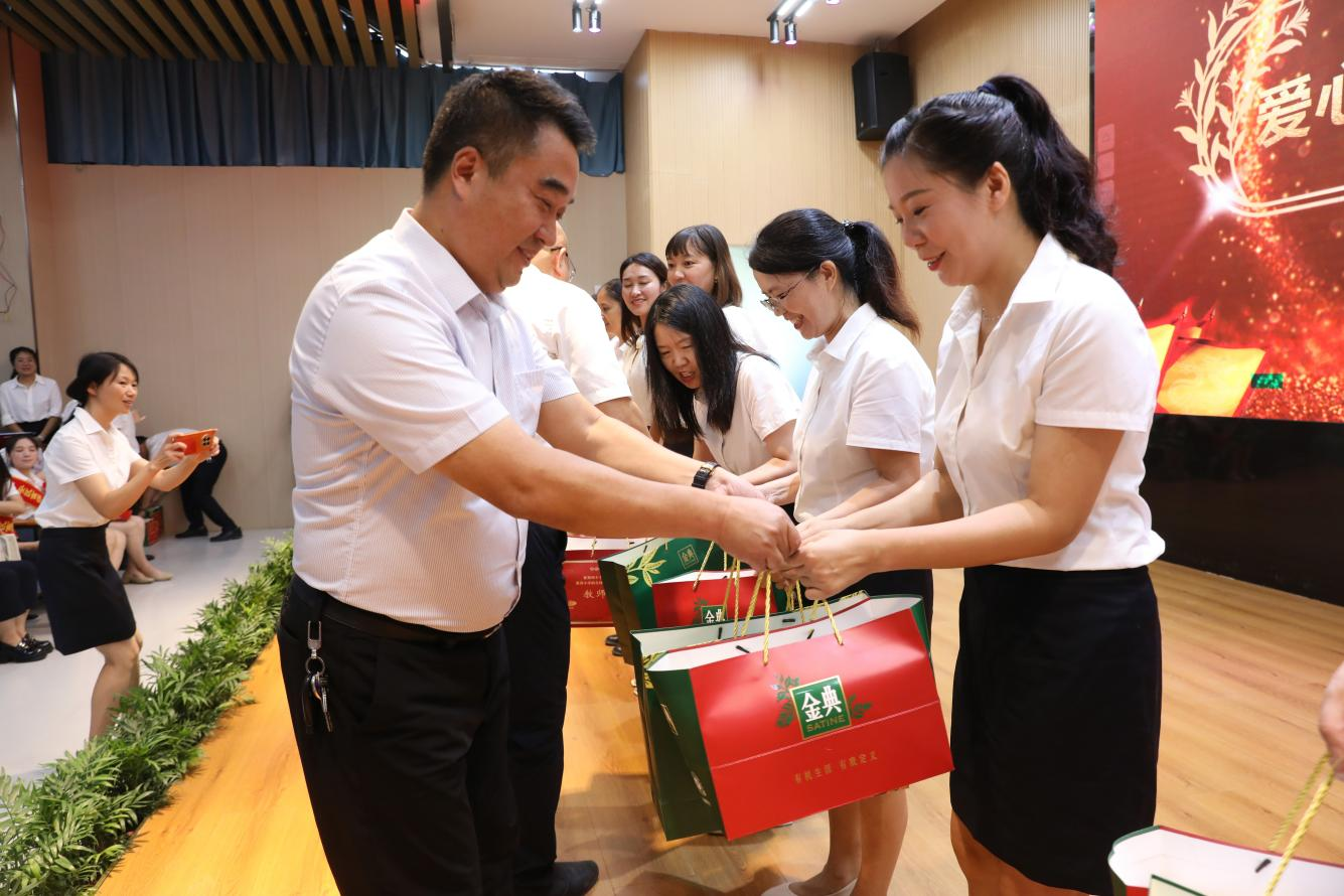 广安区政协委员、爱心企业家在向教师发放慰问品。
