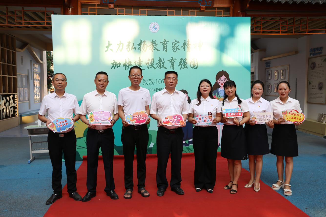 为大力弘扬教育家精神,加快建设教育强国,结合庆祝第40个教师节,四川省广安市广安区富源小学采纳政协委员建议为全校教师精心准备了一份别样的礼物,由校长游忠燕选购的两本教师职业素养书籍《一间辽阔的教室》《做一个学生喜欢的教师》。此外,还组织教师在手持教书育人类卡牌在签名前宣誓承诺:弘扬教育家精神,办好人民满意教育。