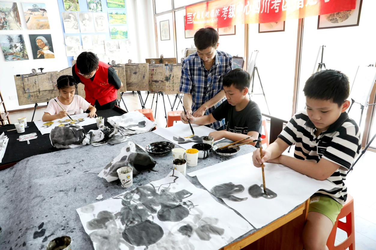多彩暑假,书画相伴。8月11日,四川省广安市广安区政协诗书画院结合“同心共建现代化四川广安”行动在中桥街道白塔社区新时代文明实践中心艺术坊举办的暑假书法绘画兴趣班开班,由书法家、画家执教,吸引了社区15名儿童参加为期一周的书法、绘画免费学习。