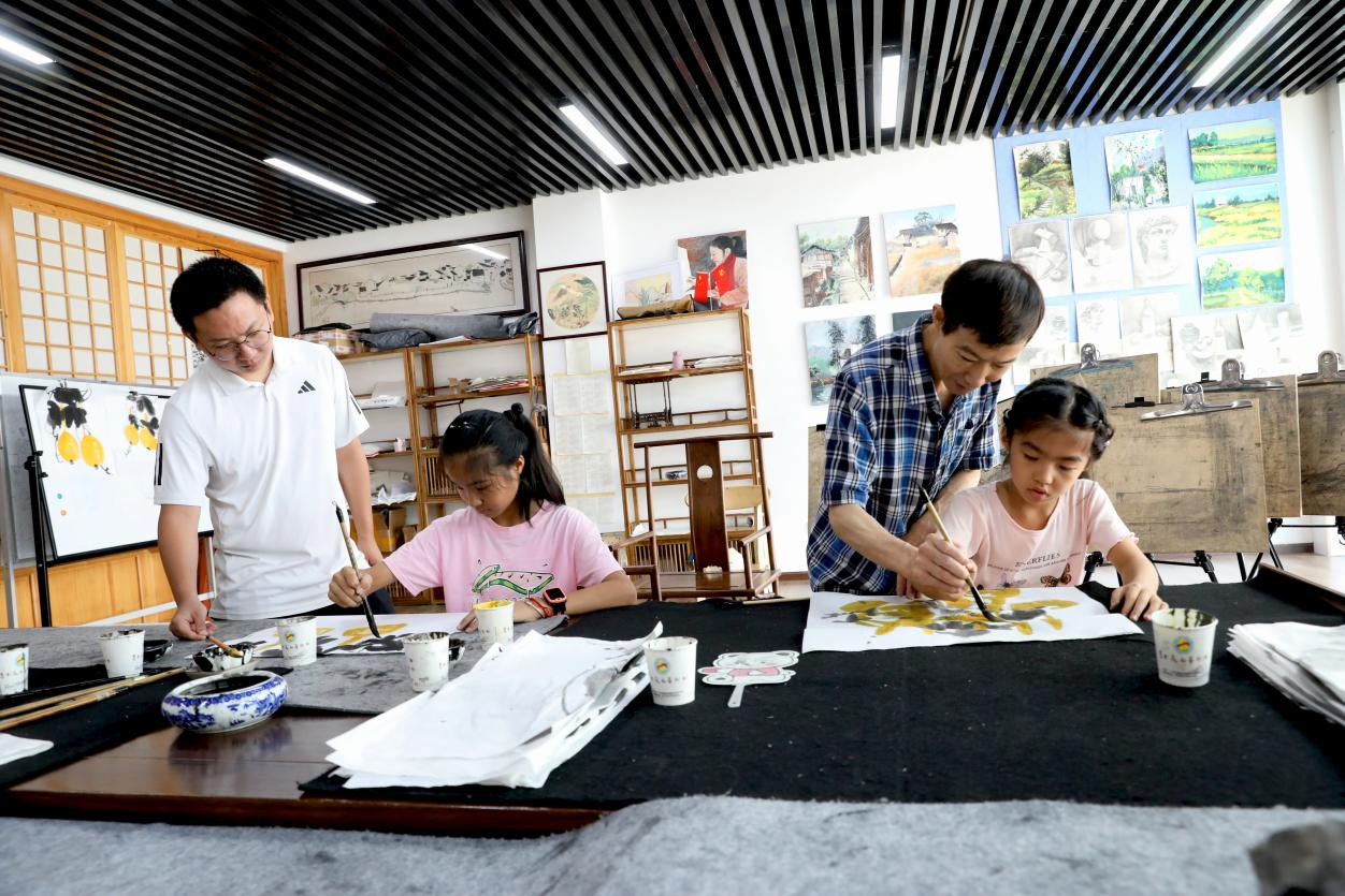 8月13日,广安区政协诗书画院画家在中桥街道白塔社区新时代文明实践中心艺术坊指导社区儿童绘画。