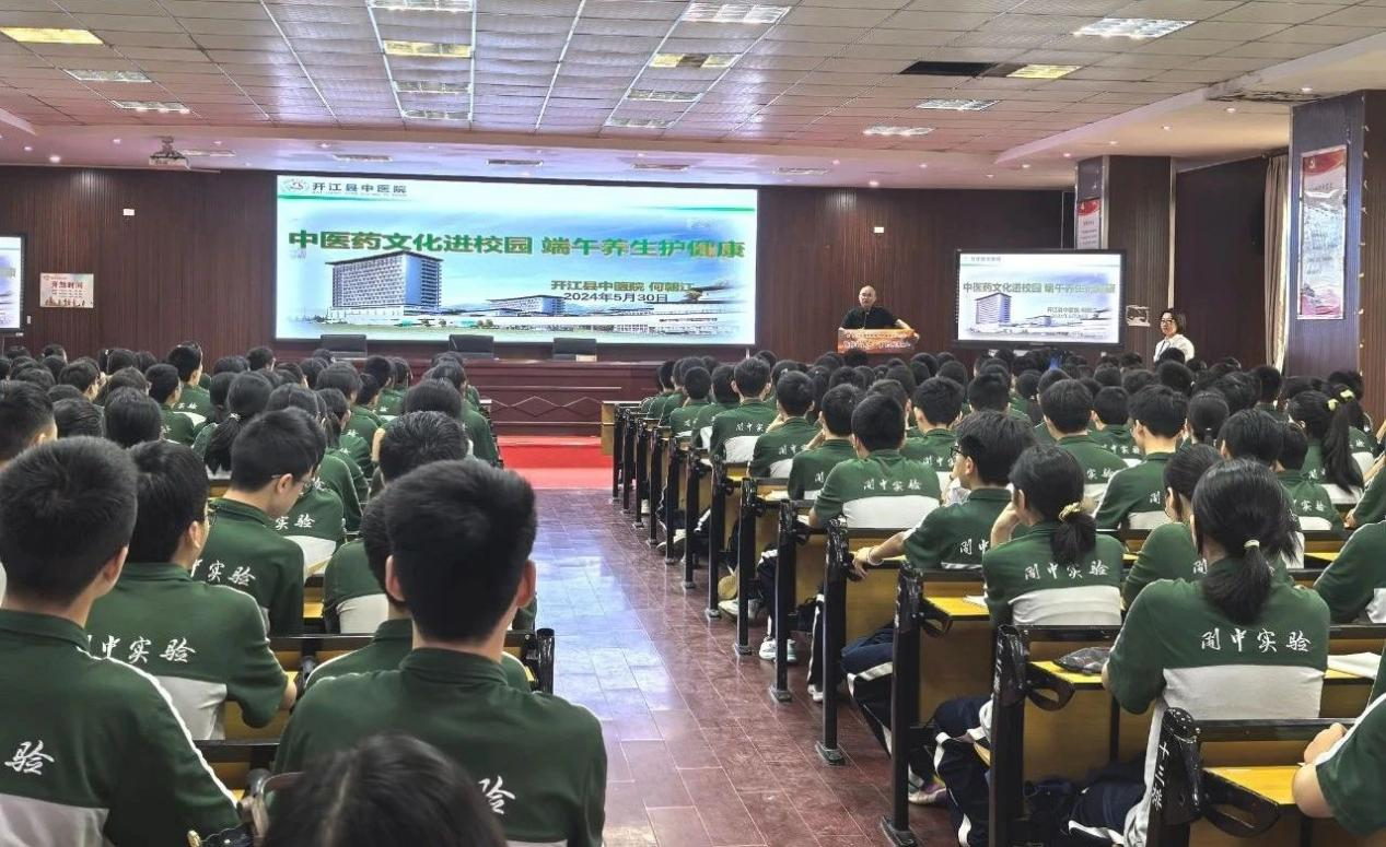 本网讯(王小雪 记者 丁明海)悠悠草药香,浸润赤子心。中医药文化根植于中国传统文化,是中华民族的瑰宝,凝聚了中华民族的伟大智慧。为进一步弘扬中医药文化,增进青少年对中医药传统文化的认知,开江县中医院受开江中学实验学校邀请,入校与师生们共同开展了以“中医药文化进校园 端午养生护健康”为主题的讲座。