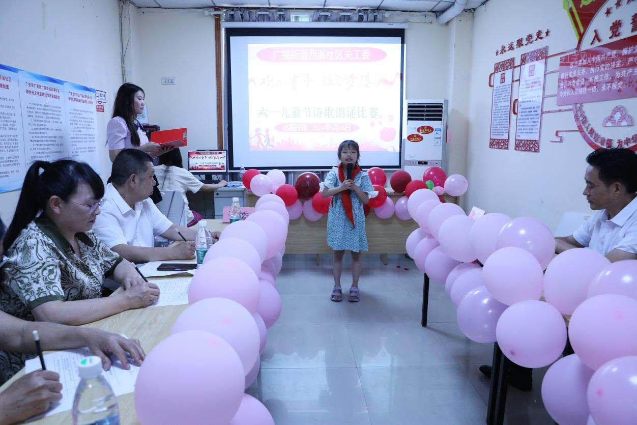 六一儿童节是孩子们的欢乐谷,也是培养孩子们想象力、创造力、团队协作能力和实践能力的良好时机。为了进一步继承和弘扬中华优秀传统文化,丰富儿童文化生活,引导儿童传承中华文脉、亲近中华经典,展现当代学生的文化自信和文化魅力,5月26日,广安区广福街道关工委、西溪社区关工委联合屏山县仁善社工服务中心联合在西溪社区举行“经典诗词”诵读比赛六一儿童节活动,共吸引了10名社区儿童参加比赛。