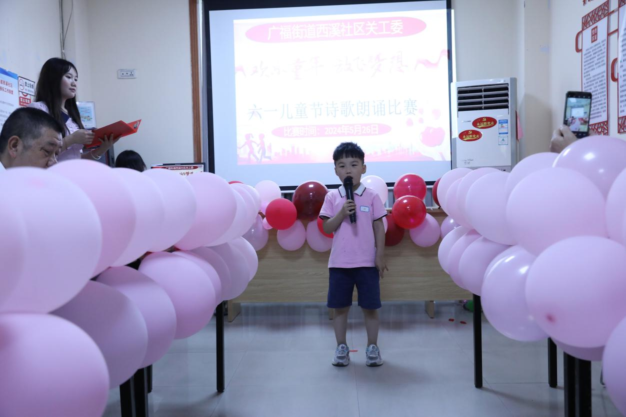 广福街道西溪社区儿童在参加“经典诗词”诵读比赛,在亲近中华经典中欢乐过六一。