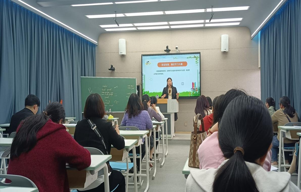 名师工作室成员蒋银华在专题讲座上,主讲了《巧用英语歌曲促教学》,探讨了英语歌曲在英语教学中的巧用、妙用,重点介绍了怎样创编英语歌曲以及在线资源的运用,改善传统枯燥的教学方法。同时,参与老师对在课堂中整合教学法的好处和挑战展开了讨论,并总结教师在设计教学活动时不仅需要适应时代要求,还需适应学生的年龄特征,保持与传统教学方法的平衡。