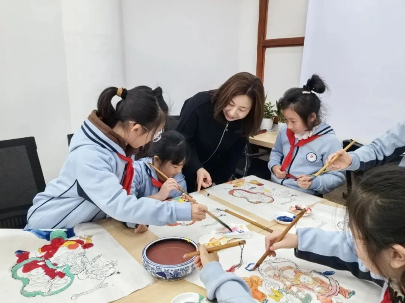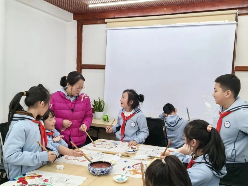 活动最后,同学们在馆内参与了诗歌朗诵、木板年画非遗体验、软笔书法练习等一系列有趣又实用的研学课程,孩子们听得很认真,现场积极互动,受益匪浅、兴致盎然。
