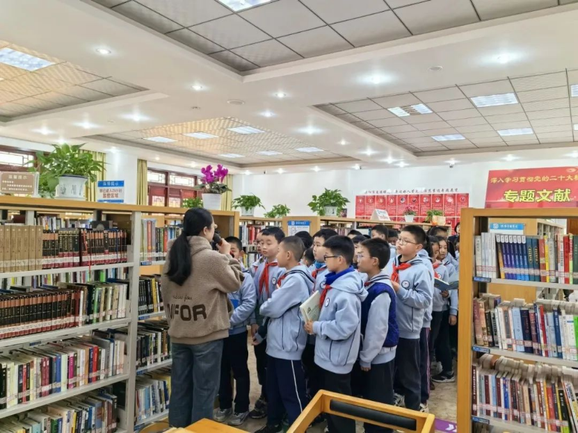 初到图书馆,同学们都被图书馆明亮、宽敞的环境和富有特色的建筑风格所深深地吸引,他们既激动又兴奋,不断用童稚和好奇的目光捕捉着一切,书架上整齐摆放着一本本精美的图书,散发出阵阵书香。