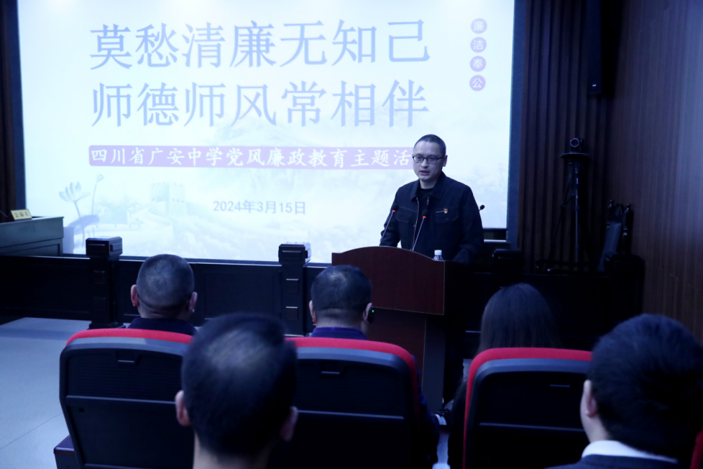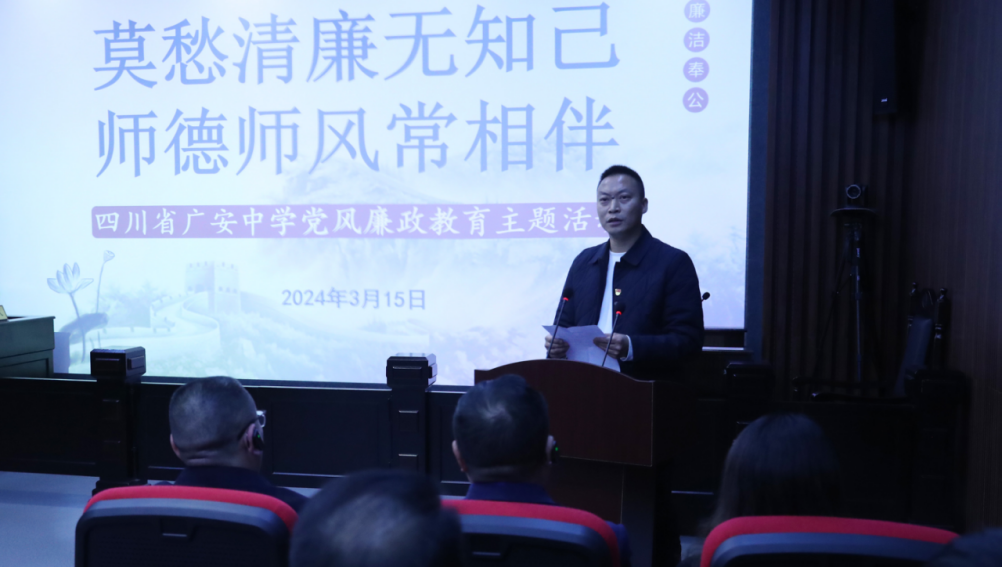 广安中学党委副书记余孝成主持党风廉政警示教育会
