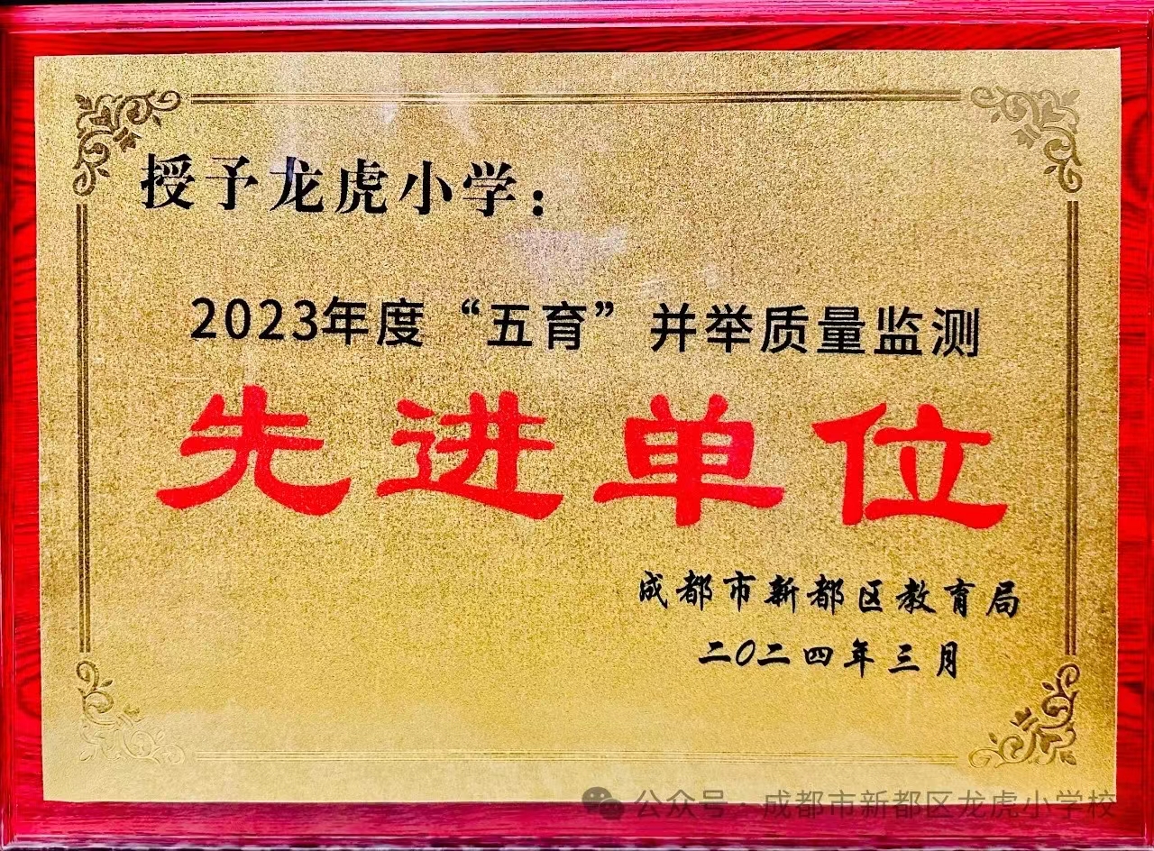 龙虎小学张弘校长表示,龙虎小学此次荣获新都区2023年度五育并举质量监测先进学校,既是对学校办学成果的肯定,也是对学校未来发展的鞭策。我们将继续秉承五育并举的教育理念,大力推进素质教育,努力提升教育质量,办老百姓家门口的好学校,让龙虎娃龙腾虎跃、虎虎生威,健康成长。