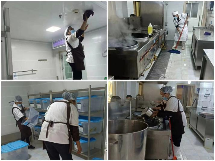 “民以食为天,食以安为先”。为守护师生舌尖上的安全,厨房人员对各角落进行全面整理消杀,为师生的饮食卫生安全做好保障工作。