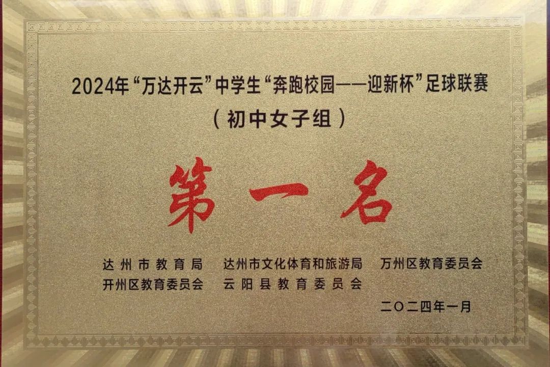 1月7日,首届“万达开云”中学生“奔跑校园—迎新杯”足球联赛落下帷幕。经过激烈比拼,由达州中学代表的达州女足队拿下初中组女子冠军,取得新年赛事开门红!