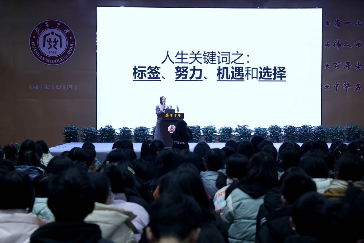 本网讯(廖小兵 魏钰泽 记者 沈仁平)“学弟学妹们,很高兴回到母校给大家分享成长经历,今天我用四个关键词:标签、努力、选择、机遇,来向大家讲解,希望你们喜欢。”1月4日晚,广安中学篮球馆座无虚席,该校举办的杰出校友、90后女博导夏娟回访母校励志讲学活动在这里举行,2600余名高中学子在兴致勃勃地聆听讲座。