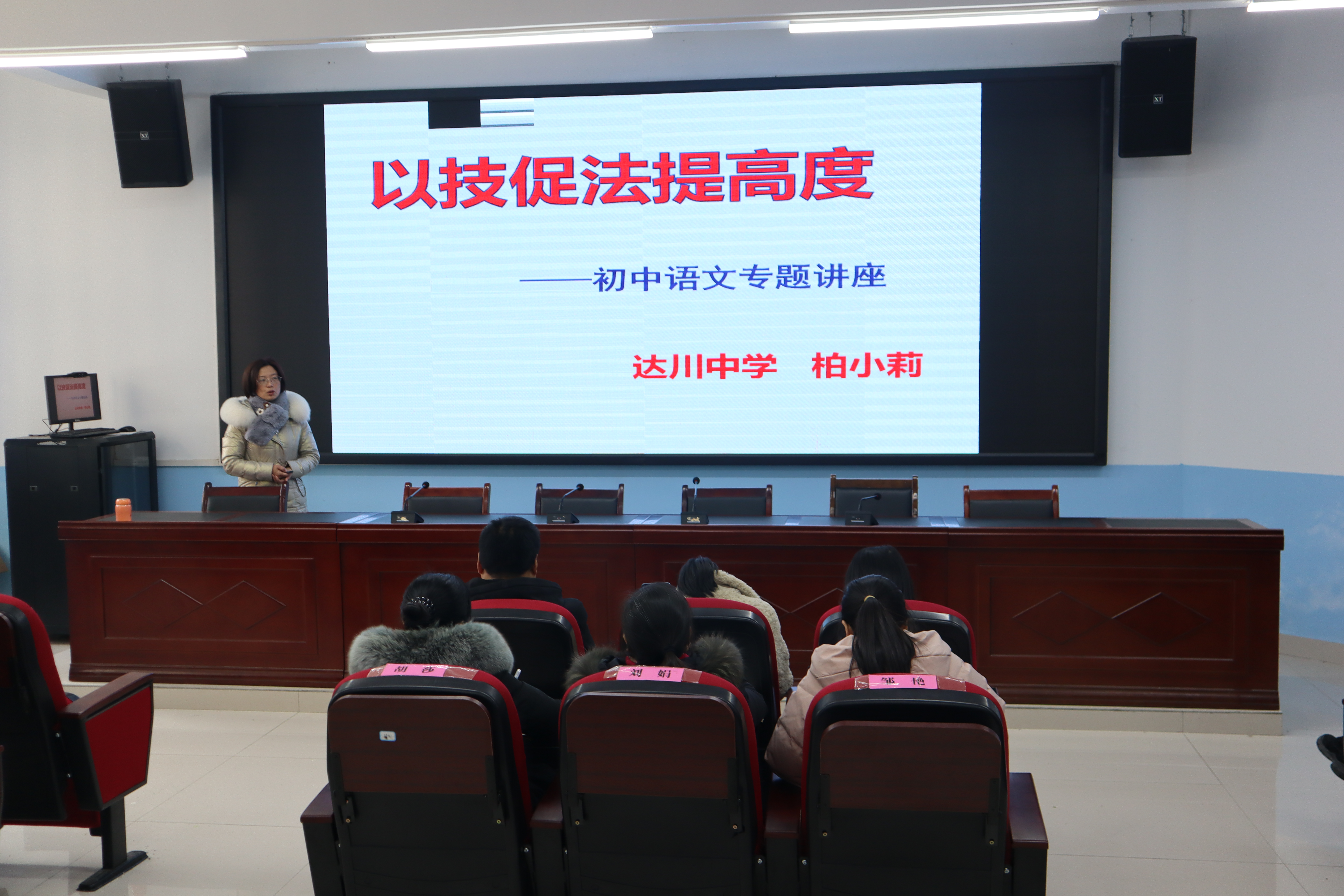 活动中,党员名师工作室柏小莉老师针对初中语文学习的方法开展了《以技促法提高度》为主题的专题讲座。她从析透《课程标准》找依据、掌握“命题趋势”正方向、抓实“复习步骤”稳提升这三个方面向大家介绍了在语文学习中教师如何授以技法,学生如何用之增效的方法。交流中,柏老师以问题层层推进,她对复习步骤提出了“复习的三原则”“复习的五步走”“复习的三板块”,重点阐述了基础、阅读和写作三板块内容。柏老师用干净凝练的语言和生动的案例,总结自己的教学经验,告诉老师们如何巧妙结合并运用到教学之中。在座老师们认真倾听,仔细记录,还时不时拿起手机拍照保存,纷纷表示,柏老师带来了一堂生动实用的讲座。