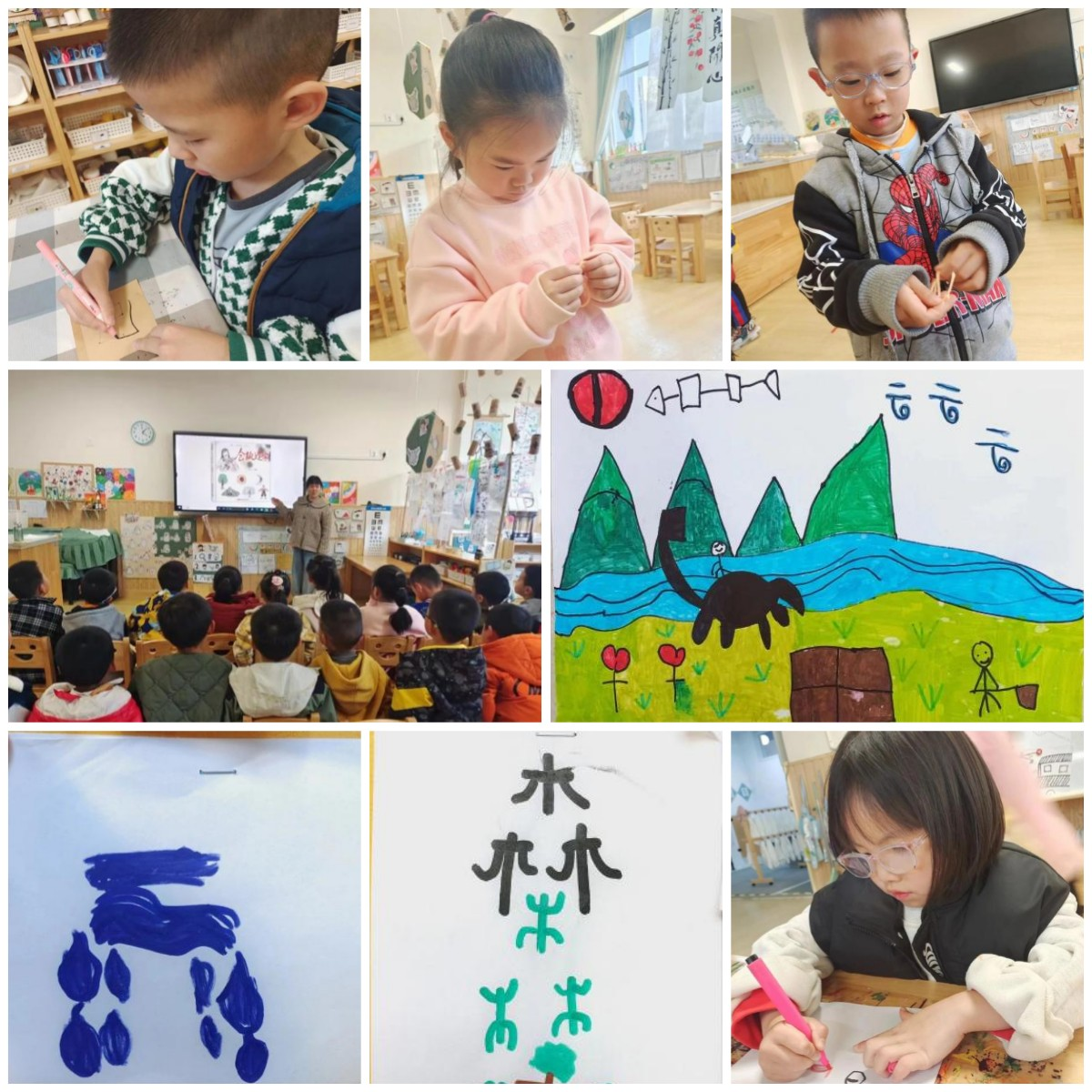 了解了这些之后,孩子们开始创作象形字和创作象形画的游戏。