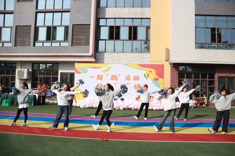 童年的火花,在节奏中迸发,奋进的激情,在音符中闪现,活力与动感互融的教师啦啦操舞出了对美好未来的深深祝福。