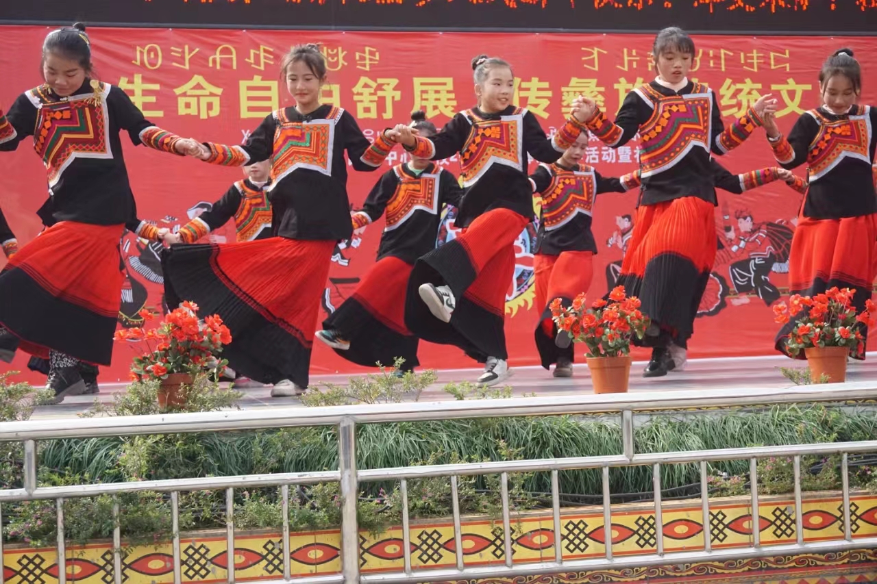 当天,该校的千余名师生身穿节日的盛装,欢聚在校操场,共同参加以“让生命自由舒展,传彝族传统文化”为主题的彝历新年庆祝活动。