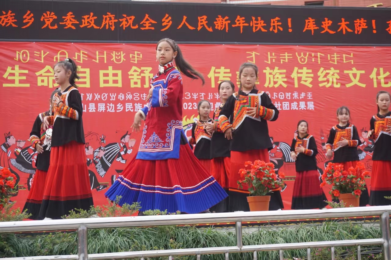 本网讯(刘波 耍子木尔 记者 黄韬)11月17日,在偏远的屏山县屏边彝族乡中心学校,彩旗飞舞,歌声荡漾,一场别开生面的彝族新年庆典在此上演。