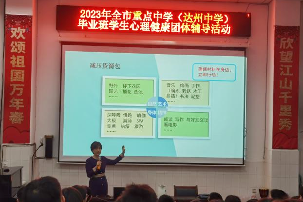 短短2个小时的激情辅导,彭老师用精心准备的PPT课件,加上自己丰富的专业知识,结合鲜活的典型个案和擅长的心理辅导技能,教会同学们成为自己情绪的主人,而不是被情绪掌控。鼓励大家相信自己,永不言弃,以梦为马,不负韶华!在同学们热烈的掌声中结束了本次讲座。(罗广武)