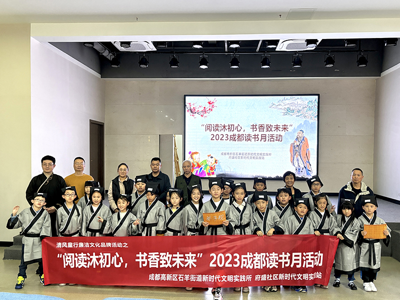 本网讯(记者 肖朝德)国学经典穿越千年时空,书声琅琅承续中华文明。为使社区青少年能终身发展积淀厚重的国学底蕴,提高学生的道德素养和文化品味,营造读好书、常读书的良好氛围。10月30日,成都高新区石羊街道府盛社区新时代文明实践站组织开展了“阅读沐初心,书香致未来”2023成都读书月活动。