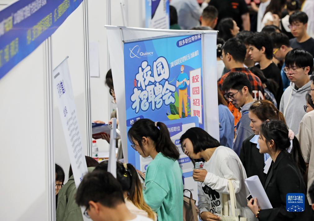 10月16日拍摄的招聘会现场。新华社记者 刘颖 摄10月16日,毕业生在招聘会上了解招聘信息。新华社记者 刘颖 摄