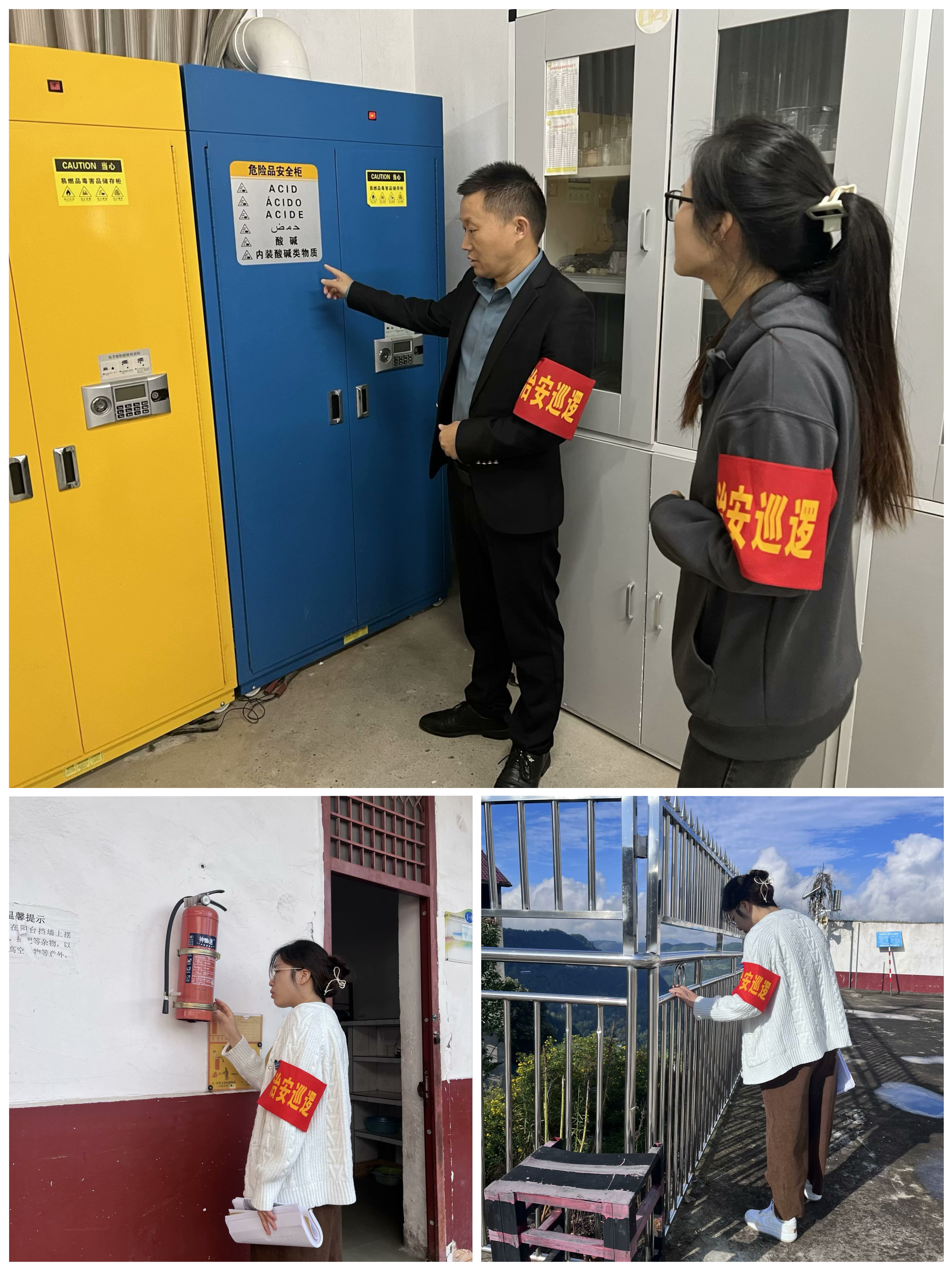 强化管理,安全工作落实落细。学校安排值周教师每周一对校园内外要进行细致排查,建立安全隐患台账,及时提出整改措施;安全后勤处定期对灭火器、消防栓、防暴器材等安全设施设备和天然气、电线、电器进行检查,及时消除隐患;学校成立护学岗,学生到校、放假离校时,护学岗人员手持防暴器材在校门口执勤,清理校园周边治安环境,疏导和维护交通秩序,防止社会闲杂人员混入校内,及时发现和化解安全隐患,确保学生出入学校的安全;学校实行安全网格化管理,确保事事有人管,处处有人管,时时有人管。