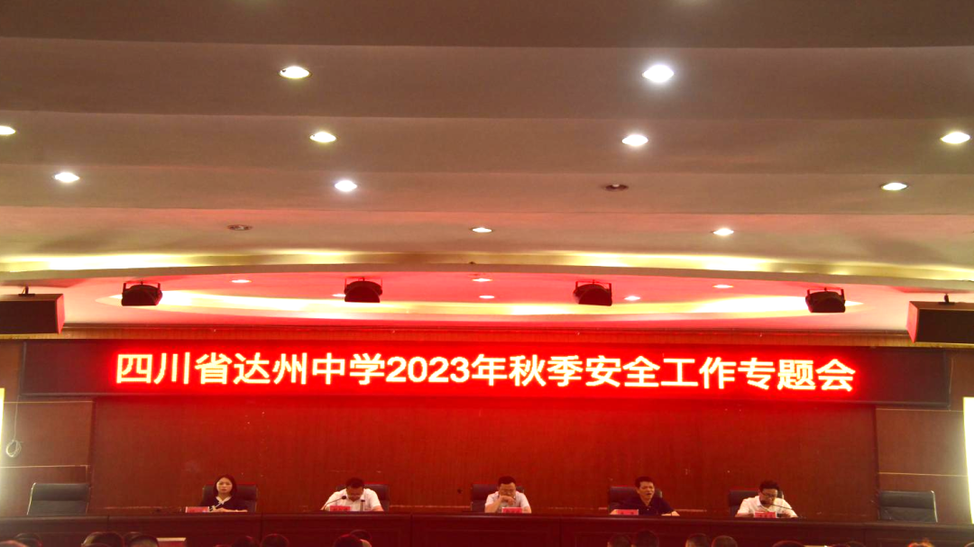 9月13日, 四川省达州中学2023年秋季安全工作会在翠屏校区艺体馆一楼大会议室举行,校长郭德波等校领导以及翠屏校区全体班主任参加会议。学校党委副书记彭仁俊主持本次会议。