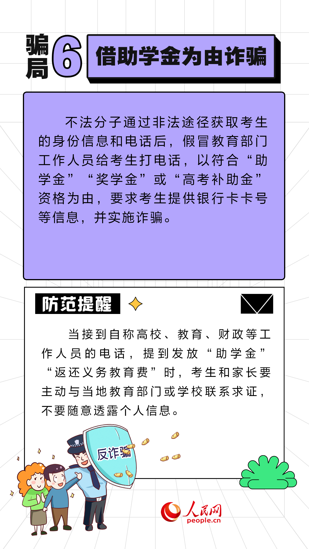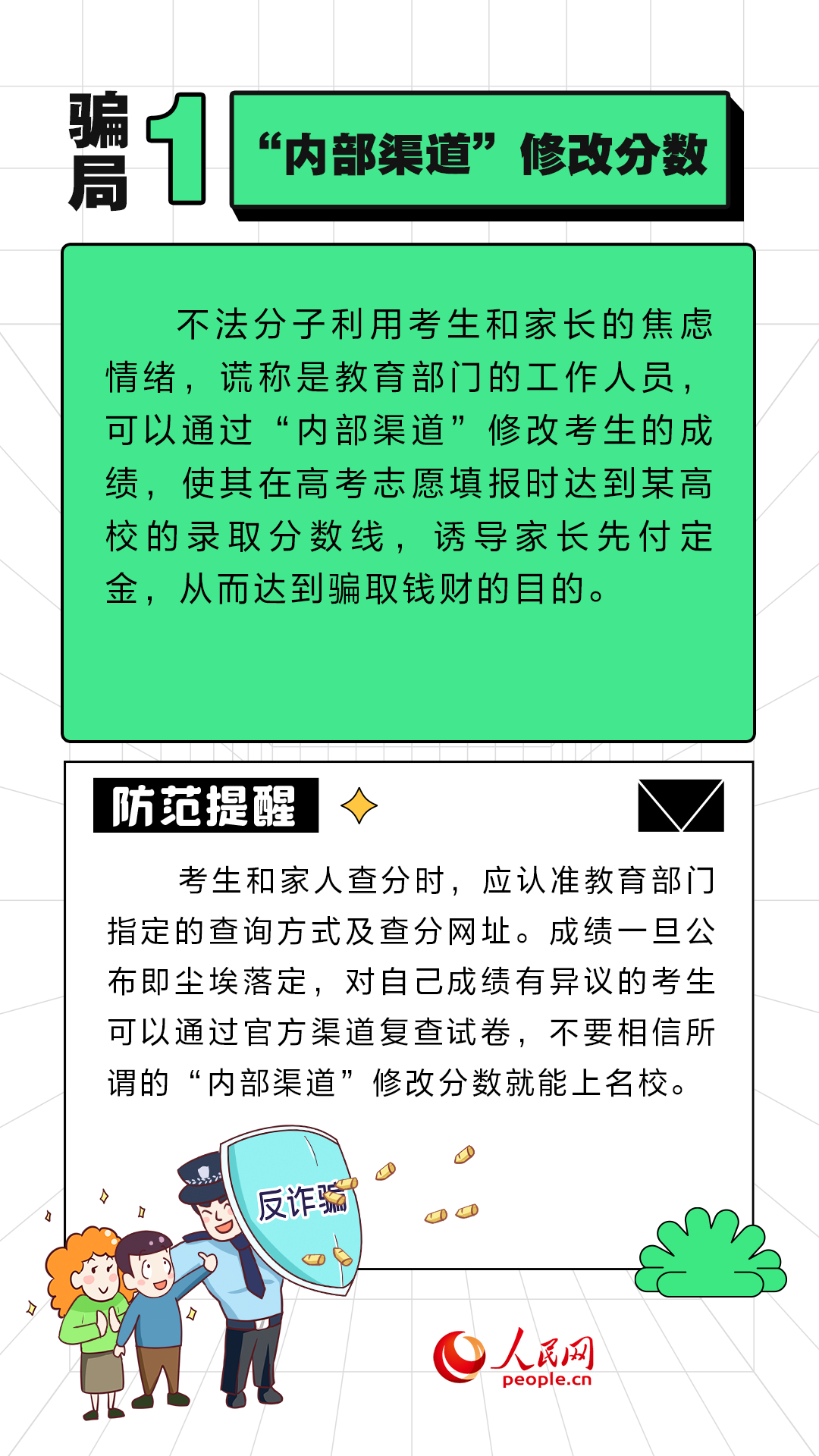 近期,全国各地陆续公布高考成绩,高考志愿填报工作已启动。一些不法分子抓住考生和家长对院校和专业的“信息差”,实施诈骗活动。人民网“求真”栏目整理了几类常见的有关高考志愿填报的骗局,提醒广大考生和家长提高警惕。(周静圆)