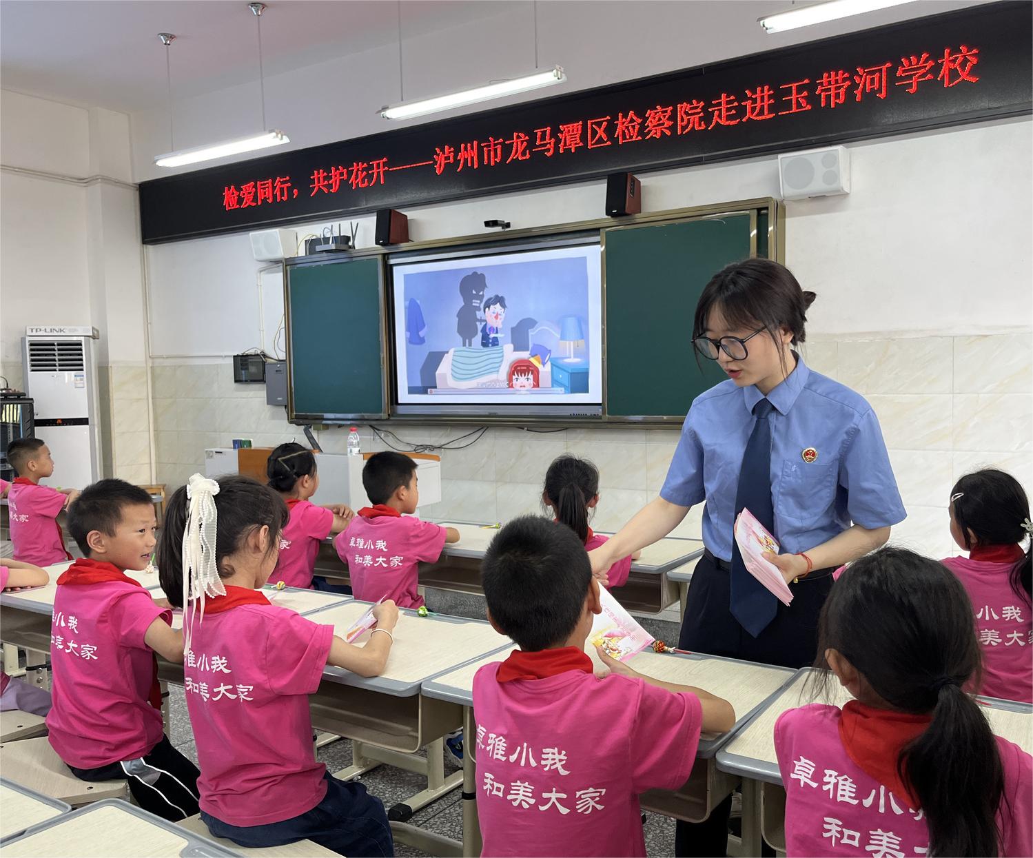 5月30日,在“六一”国际儿童节来临之际,泸州市龙马潭区检察院“检爱同行,共护花开”检察开放日活动走进玉带河学校,为120多名学生和家长带来未成年人性侵害预防科普教育。