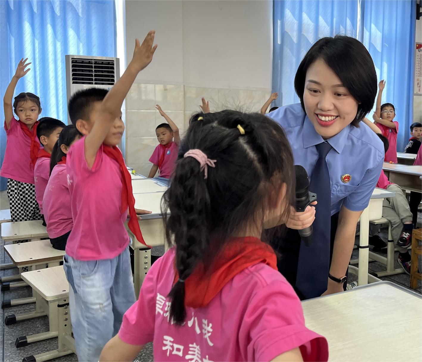 在这节特殊的班会上,检察官以“安全自护指南针”为主题,用活泼的儿歌作为切入点,向学生科普哪些部位是隐私部位,遇到危险该如求救等知识。并用趣味问答的形式调动孩子们积极互动,更好的了解相关知识,教育引导同学们提高安全防范意识和防范不法侵害的能力,勇敢地运用法律武器保护自身合法权益。