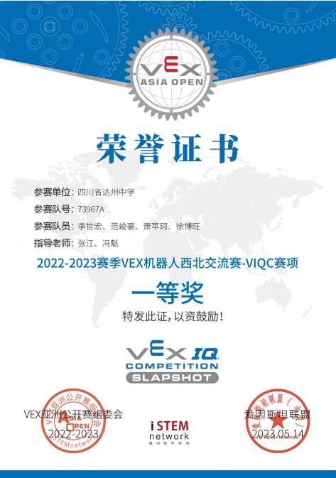 科创筑梦,引领未来。5月13-14日,VEX亚洲公开赛西北交流赛在陕西省西咸新区清华大学附中秦汉学校马约翰综合体育馆隆重举行。达州中学代表队(队号:73967A)力克各种艰难险阻,最终斩获VEXIQ赛项一等奖。
