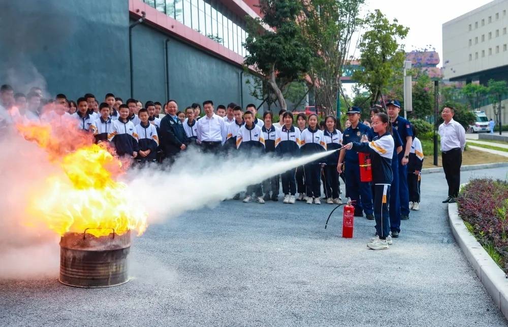 在灭火演练现场,消防员讲解了灭火器的使用方法后,同学们争先恐后参与其中,进行灭火实操体验,严格按照灭火要领喷灭火情,赢得小观众的阵阵掌声。