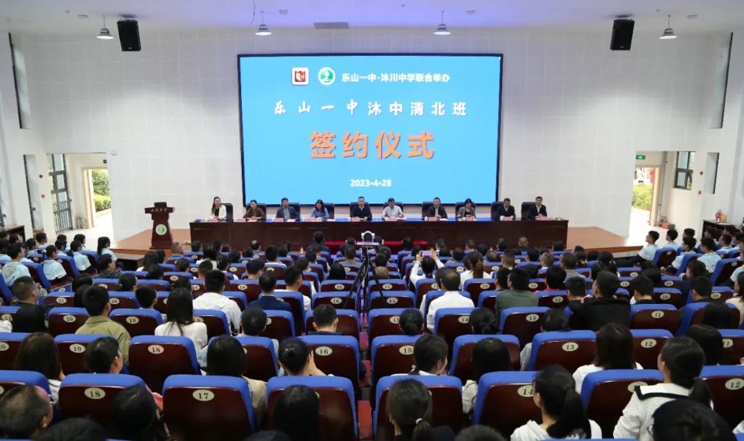 4月28日,由乐山一中、沐川中学联合举办的“乐山一中沐中清北班”签约仪式在沐川中学举行。乐山市委教育工委书记、市教育局局长刘才能为“乐山一中沐中清北班”授牌,沐川县委书记余斌亲临签约仪式致辞。中共沐川县委常委、宣传部长魏蔚主持签约仪式,乐山市教育局副局长罗承志,沐川县人民政府副县长韩雪梅,乐山市教科所所长许泽能,县委教育工委书记费玉芳,县教育局局长胡佩珊,乐山一中、县教育系统师生代表共300余人参加签约仪式。