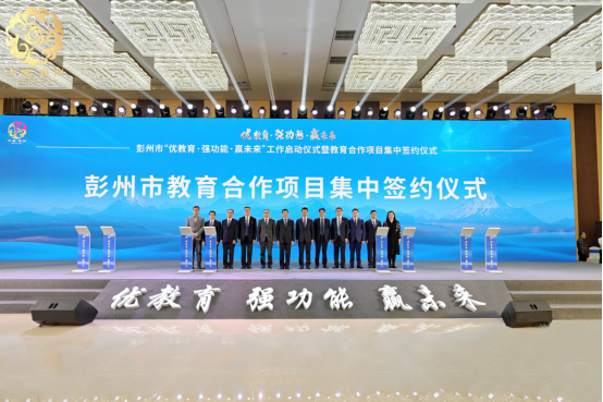 本网讯(记者 李艳)4月14日,由中共彭州市委、彭州市人民政府、成都市发展和改革委员会、成都市教育局主办,成都市广播电视台、彭州市教育局承办的彭州市“优教育·强功能·赢未来”工作启动仪式暨教育合作项目集中签约仪式在彭州市汇通湖商务区创新中心举行。