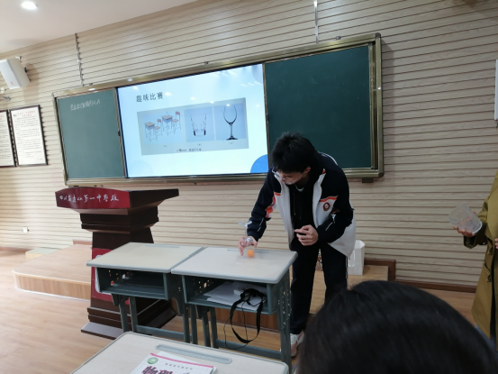 在知识回顾环节,周老师精心准备,巧妙设计了趣味比赛——移动乒乓球,让学生在两种杯子里旋转乒乓球,观察并思考讨论:为什么左边的杯子里的乒乓球能转起来,右边的却不能?周老师逐步引导学生进行受力分析,体会物理知识与生活经验的紧密联系,激发了学生浓浓的求知欲,体现了物理核心素养中的科学思维和科学探究素养。